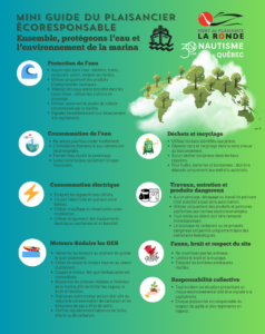 Nous avons aussi préparé un mini guide du plaisancier écoresponsable, afin de sensibiliser notre communauté et d’encourager de petits gestes qui font une grande différence pour nos plans d’eau et notre écosystème.